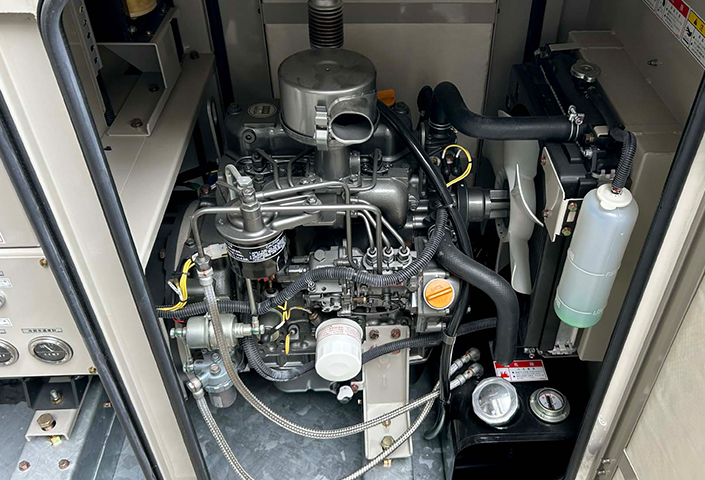 まだ新しい施設であるため、非常用発電機は全体的に非常に良好な状態でした。本施設では年に一度、負荷試験を含む定期点検を確実に実施されており、日頃からメンテナンスが行き届いた防災意識の高い運用体制が整っています。