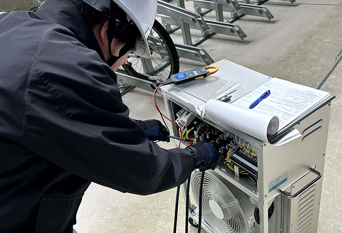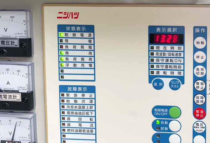 非常用発電機は、他の部品が正常であっても、バッテリーに不具合があれば始動できません。そうした重要ポイントも含め、確実な点検を行いました。